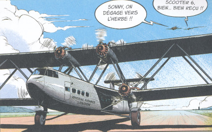 In the "origins" story LETTRES À JO a biplane airlainers Handley Page H.P.42 is represented by De Luca. |