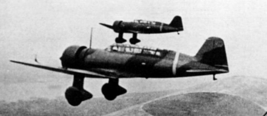A group of Aichi D1A are also shown in the story LES MYSTERES DE MIDWAY. In reality these old biplane aircraft were not utilized during the Midway battle being the advanced variant Aichi D3A1 used during this battle.