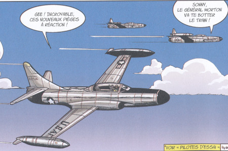 A North American F-86 Sabre (probably and F-86A) is well depicted in the story PILOTES D'ESSAI.