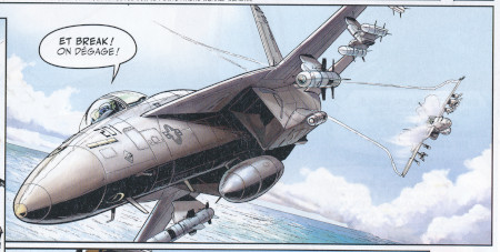 Divided into two teams respectively to recognize the northern and southern borders Basran, Buck Danny and his comrates are equipped with Sukhoi borrowed from USAF Aggressor Squadron and the Israeli Air Force. The Sukhoi 30 are thus tested on board of the USS Ronald Reagan partially modified with a sky jump to allow the take off of the Sukhoi without using the catapult. |