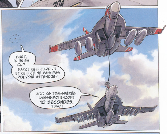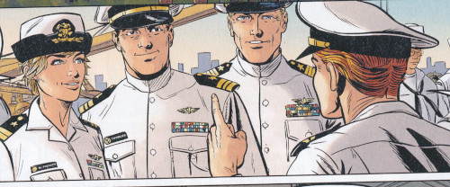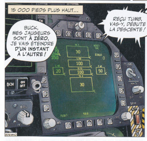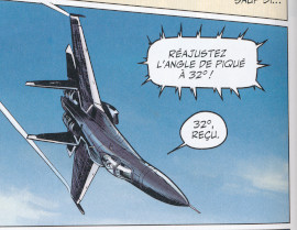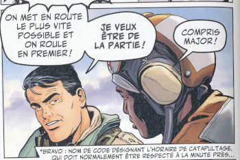 | In this adventure Buck Danny and his friends are shown as US Navy officers rather than USAF officers. Although improbably they retain their Air Force ranks of Colonel, Major and Captain, instead of their Navy equivalents of Captain, Lieutenant Commander and Lieutenant. |