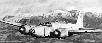 | Another representations of a Japanese Mitsubishi Ki-21 is present in the stories LES TIGRES VOLANTS and THE MASCOTTE. The Mitsubishi Ki-21 (Allied codename: "Sally" /"Gwen") was a Japanese bomber during World War II. It began operations during the Second Sino-Japanese War participating in the Nomonhan Incident, and in the first stages of the Pacific War, including the Malayan, Burmese, Dutch East Indies and New Guinea Campaigns. It was also used to attack targets as far-flung as western China, India and northern Australia. |