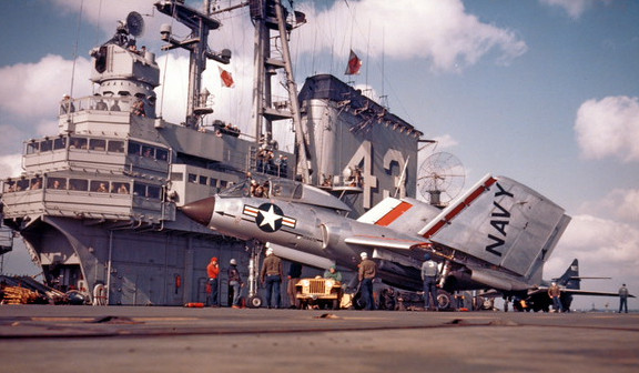 Some F-8E Crusader of VF-32 on board of USS Saratoga in the 1961 are well represented by Arroyo in the Buck Danny classic adventure #5 titled OPÉRATION RIDEAU DE FER.