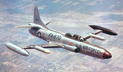 The Lockheed F-94 was the United States Air Force's first operational jet-powered all-weather interceptor aircraft. It was a development of the two seater T-33 Shooting Star trainer aircraft. Built to a 1948 USAF specification for a radar equipped interceptor to replace the aging Northrop F-61 Black Widow and North American F-82 Twin Mustang, it was specifically designed to counter the threat of the USSR's new Tupolev Tu-4 bombers. It was armed with; Guns: 4× .50 in (12.7 mm) Browning M2 machine guns Rockets: 24× or 48× 2.75 in (70 mm) fin-folding aerial rockets.