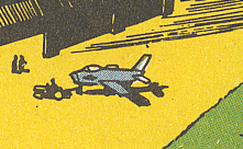 In the story PILOTES D'ESSAI Jerry Tumbler is flying on a Lockheed F-94C Starfire. After a failure of the aerial rocket Tumbler was forced to eject from his fighter suffering major injuries on the legs. |
