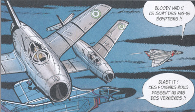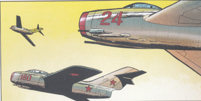 An F-86 Sabre and a Mig 15 involved in a dog fight during the Korean war are also depicted inthe story LES AGRESSEURS