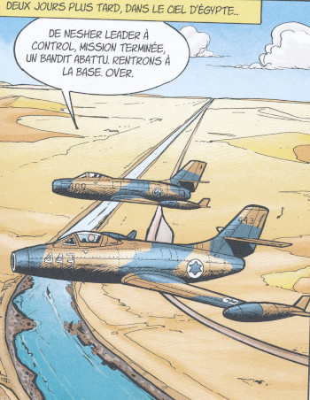 A couple of Israeli Air Force MD 450 Ouragan are depicted in the Buck Danny classic #13 MISSION PHARAON. |
