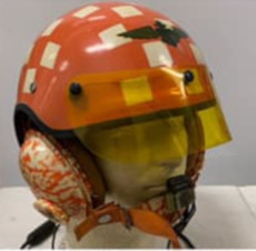 | US Navy H-1 helmet early variant used by NATC test pilot with pivot visor customized from B-8 Goggle |