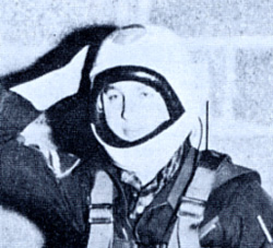 | Douglas production test pilot Bill Bridgeman wearing a probable "custom-built" Protecton Incorporated type flight helmet. Bridgeman was involved in the flights on US NAVY experimental jet/rocket aircraft D-558-2 Skyrocket in 1949-50. (Douglas) |