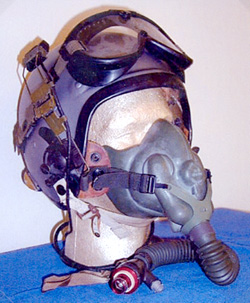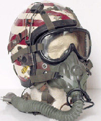 US Navy H-1 helmet early variant with MS22001 Oxygen mask. (Smithsonian Museum) |