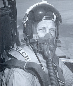 | USN Blue Angels pilot Capt Arthur "Ray" Hawkins with H-2 helmet with the logo of the Aerobatic Team at the beginning of the 50s |