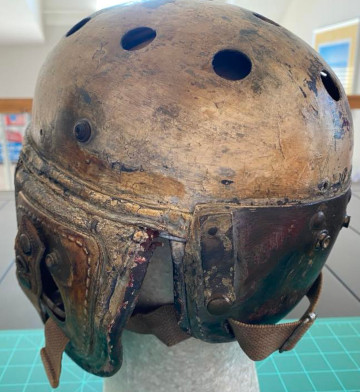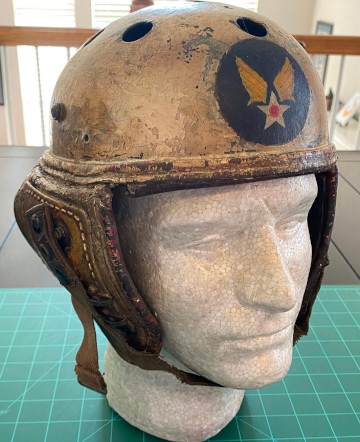 | Very interesting early USAF rigid flight helmet customized from a leather football helmet (Tim Mackie) |