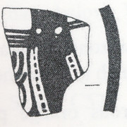 Miletus is associated with Thebes also in the archive Linear b tablets which contain repeated reference to a certain "Miletian"; this man was involved in ritual sacrifices and occupied, possibly, a certain position in the Theban palace. In this Achaean pottery fragment from Miletus dated LH IIIB2 (about 1250 BC) a typic Hittite style high helmet or pillar seems to be represented. |