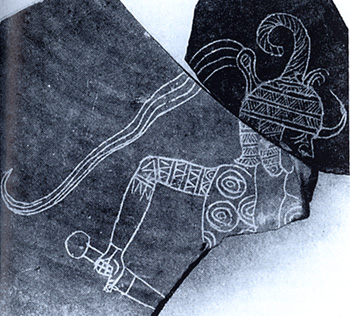 Possible representation of Ahhiyawa warrior on Hittite pottery (about 1350 BC) |