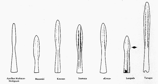 | Group A Bronze spear or javelin points from Crete dated MM (about 2200-1600 BC) |