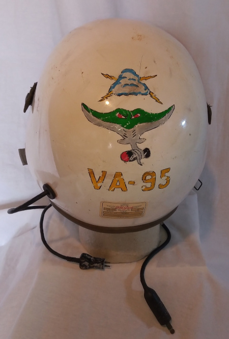 This "Bill Jack" D8-50 flight helmet was used by US Navy pilot from VA-95 on AD-7 Skyraider during the middle of the 50s. |