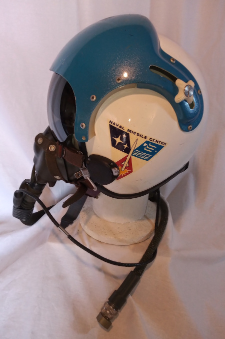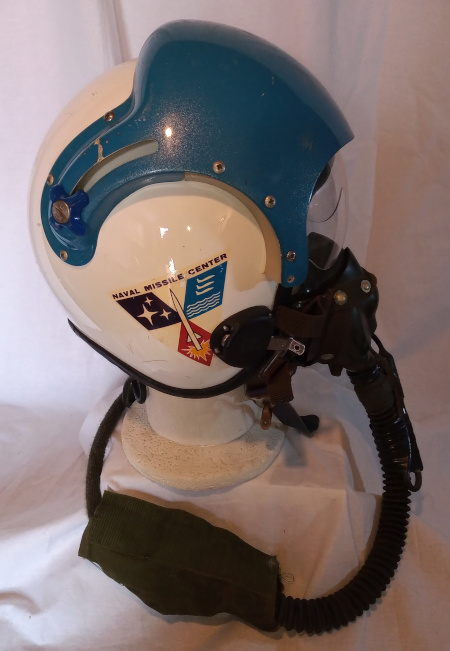 US Navy Custom fit APH-6B (with late APH-5 bayonet receivers) flight helmet with MS22001 oxygen mask. Naval Missile Center (1970) |