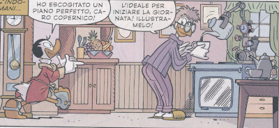 Lord Quacket, Dolly Duck and Copernicus Gearloose have a meal in the living room at the second floor of Villa Rose inthe story LE STRABILIANTI IMPRESE DI FANTOMIUS-LADRO GENTILUOMO - LA SFIDA DI FANTOMIUS (THE ASTOUNDING ENDEAVOURS OF FANTOMALLARD -GENTLEMAN THIEF- THE CHALLENGE OF FANTOMALLARD) |