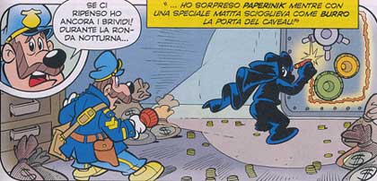 Alla fine il neo nato "eroe" riesce comunque, con molta fortuna e grazie all'intervento di Paperinik e Paperinika, a scongiurare il tentativo di furto ideato dalla solita Banda Bassotti. |