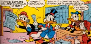 | Ancora più arrabbiato è Rockerduck che presentandosi alla redazione del "Papersera", accusa a ragion veduta Paperone di copiare le notizie direttamente dal suo giornale "La Tromba di Rockerduck". |