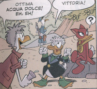 Intanto Famedoro e Cartesio programmano la prova generale del loro esperimento, mentre la scaltra Dolly Paprika finge di accettare le proposte di Cuordipietra di entrare a far parte della sua squadra di malviventi. Sulla spiaggia dell'isola di Tortuga quindi Cartesio versa in mare un sacco intero di pilole desalinizzanti ed infatti subito l'acqua salata diventa pura e potabile.