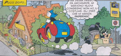 Nel frattempo Archimede, preoccupato che il papero mascherato non si è fatto più vedere, decide di andare personalmente a casa di Paperino sia per chiedere informazioni che per portargli altre Car-Can. Quando prende il pacchetto l'inventore capisce che Paperino per errore deve aver ingerito due compresse scambiandole per mentine. Archimede si reca quindi in piena notte a casa dell'amico intuendo giustamente che questo deve aver completamente perso la memoria circa la sua identità segreta.